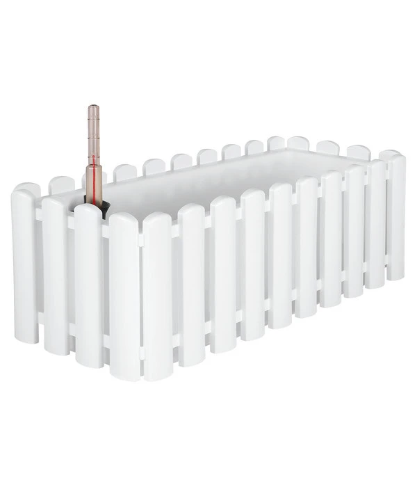 Sie wollen Ihren Balkon mit einem extravaganten Blumenkasten aufhübschen? Dann lassen Sie sich den rechteckigen Kunststoff-Kasten der Marke Geli nicht entgehen. Ob Geranien, Sonnenblumen oder Petunien, jede Pflanze sieht in diesem schicken Kasten wundervoll aus. Sein Lattenzaun-Design erinnert sofort an den angesagten Landhaus-Stil und verbreitet einen einzigartigen Charme, der Sie bei jedem Gang auf den Balkon erfreuen wird. Wenn Sie ihn bepflanzen und schon bald die farbenfrohe Blumenpracht darin bewundern, dann ist der zauberhafte Effekt dieses wunderschönen Pflanzaccessoires komplett. Um Ihnen die Pflege Ihrer Gewächse zu vereinfachen, wurde der Kasten noch mit einem hilfreichen Bewässerungssystem und einem praktischen Wasserstandsanzeiger ausgestattet.