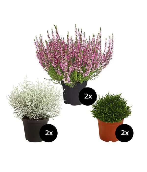 Je 2 x Calocephalus, Calluna, Hebe