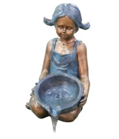 Als wäre die Zeit stehen geblieben, hat der Künstler ein Bild eingefangen, wie es vor 100 Jahren auf dem Land noch jeden Tag zu sehen war. Ein kleines Mädchen in einem einfachen Sommerkleid, die Haare zu braven Zöpfen gebunden, kniet an einer Wasserstelle und schöpft Wasser. Vielleicht wurde sie von der Mutter zum Wasserholen geschickt, aber anscheinend hat sie im Moment ihre Aufgabe vergessen, so versunken scheint sie in ihr Spiel. Und so wie die Kleine dem ewig aus der Schüssel rinnenden Wasser zuschaut, so werden auch Sie jeden Tag Ihren Blick zum Granimex Polyresin-Gartenbrunnen Estelle lenken, um sich an dem reizenden Bild zu erfreuen. Mit diesem Wasserspiel haben Sie eine Garten-Deko entdeckt, die das Flair längst vergangener Zeiten mit dem entspannenden Geräusch von leise plätscherndem Wasser verbindet. Lassen Sie den Granimex Polyresin-Gartenbrunnen Estelle ein bisschen nostalgische Atmosphäre in Ihren Garten zaubern – Sie werden jeden Tag auf Neue begeistert sein!
