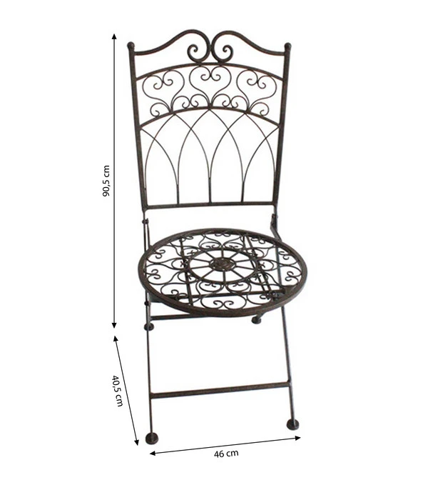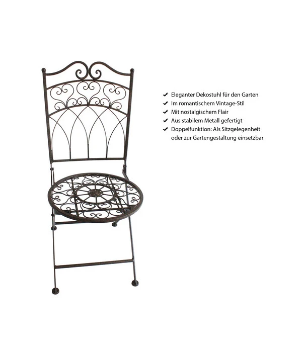 Blickfang für Terrasse oder Wintergarten: Metallstuhl Antik, 40,5 x 46 x 90,5 cm