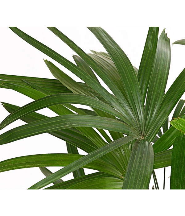 Schlanke, schilfähnliche Stängel recken sich bis in 2 m Höhe, die fächerförmigen Blätter tun ein Übriges, um die Steckenpalme zu einem attraktiven Hingucker im Wohnraum zu machen. Vor ca. 100 Jahren gehörte sie zu den beliebtesten Zimmerpalmen, die in jedem großzügigen Wohnambiente fast ein ‚Muss‘ waren, in den letzten Jahrzehnten aber geriet die dekorative Pflanze ein wenig in Vergessenheit. Wir freuen uns, dass sich heute wieder Liebhaber finden, die ihr Zuhause mit dieser attraktiven Zimmerpalme bereichern möchten. Der dichte, buschförmige Wuchs erinnert an Bambus, weshalb die Pflanze auch unter dem Namen Bambuspalme bekannt ist. Sie stammt ursprünglich aus den feuchten Bergwäldern Chinas, die Rhapis excelsa, die wir Ihnen hier anbieten, ist aber eine Kulturform, die so nicht in der Natur zu finden ist. Fühlt sich die exotische Pflanze bei Ihnen wohl, kann sie sogar weiße bis cremefarbene Blüten bilden. Die Steckenpalme ist ein dekorativer Schmuck für Wintergärten, sie setzt sich aber auch in Treppenhäusern und Eingangshallen dekorativ in Szene.