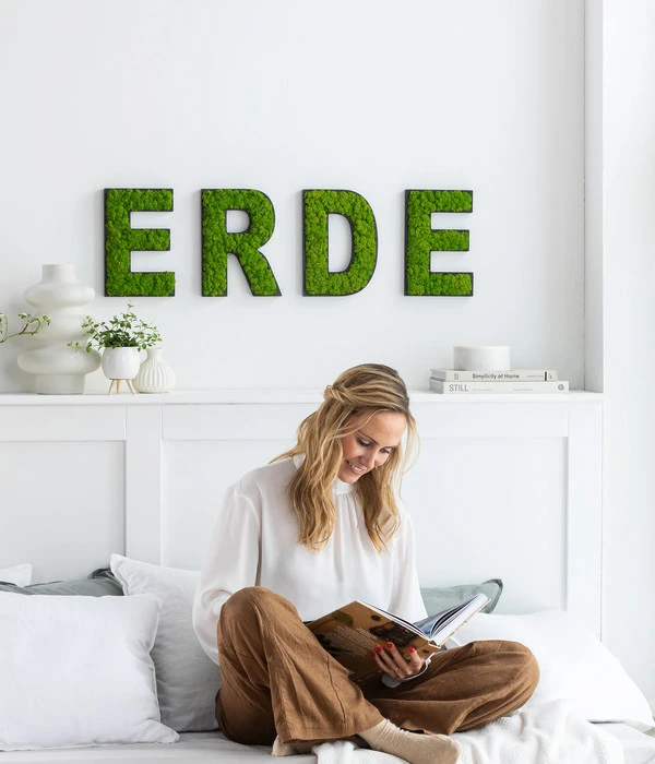 Horizontale Gärten, begrünte Wände – es gibt viele neue Trends, die so reizvoll wie natürlich sind und für die Sie sich schon seit einiger Zeit interessieren. Die Buchstaben aus Islandmoos passen einfach perfekt in diese Reihe. Ja, Sie haben richtig gesehen! Wir bieten Ihnen hier das gesamte Alphabet an – alle von Hand aus echtem, konservierten Islandmoospölsterchen angefertigt. Stellen Sie sich nur vor, was sich daraus alles kombinieren und gestalten lässt! Sagen Sie in Ihrem Eingangsbereich „Willkommen!ˮ, schreiben Sie Ihren Lieblingsspruch an die Wand oder stellen „Liebeˮ ins Regal über Ihrem Bett. Sie werden erstaunt sein, wie dekorativ das flauschige, frischgrüne Moos wirkt und wie dessen natürliche Ausstrahlung den Raum erfüllt. Also, was immer Sie gerne mit den Buchstaben aus Islandmoos ausdrücken wollen, wählen Sie einfach aus und legen los!