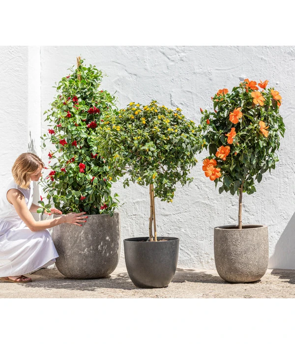 Mit Kübelpflanzen kommt Sommer, Sonne und Genuss auf Balkon und Terrasse – keine Sommer-Saison will man ohne sie verbringen. Die Lantane, besser bekannt unter dem Namen Wandelröschen ist einer dieser Kübelpflanzen-Klassiker, an dessen Blütenpracht und prägnanten Düften man sich regelrecht berauscht. Das Farbspektrum des Wandelröschens ist enorm, doch am beliebtesten sind die orangen Blüten, die auch dieser Dehner Premium Solitärstamm zeigt. Hat man sich für eine Farbe entschieden kommt man auch in den Genuss von anderen, den mit dem Auf- und Verblühen der Blütenköpfe zeigt die Lantane einen faszinierenden Farbwechsel, der einem spritzigen Fruchtcocktail gleicht. Das erklärt auch woher das Wandelröschen seinen Namen hat – es ist stetig im Wandel.